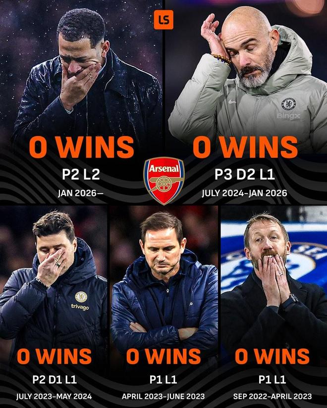 切尔西最近五位主帅对阵阿尔特塔战绩: